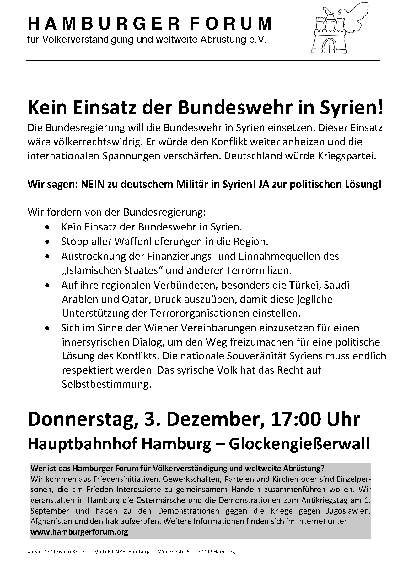 Kommt zur Kundebung, zeigt, daß ihr gegen diesen Kriegseintritt seid …